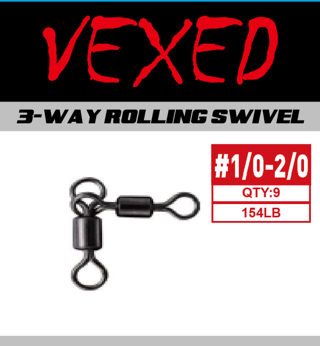 Appropriate for all salt and freshwater applications from light to heavy tackle scenarios. The Vexed 3 way rolling swivels offer both reliable quality and value for money.